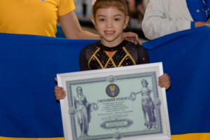 Шестирічна гімнастка зі Львова Регіна Абрамова встановила світовий рекорд, виконавши 223 підйоми із переворотом на перекладині.