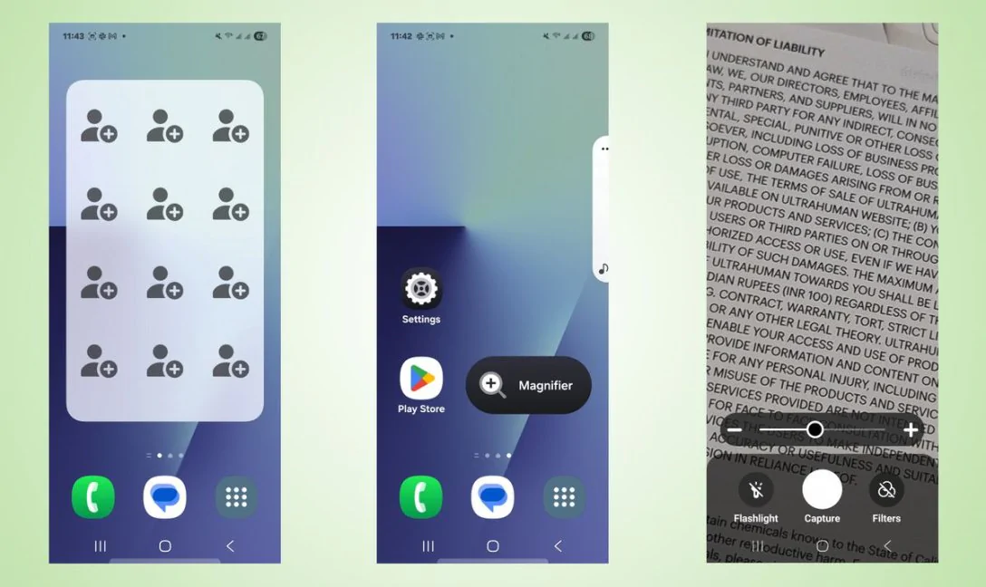 • Свайп ліворуч від головного екрана відкриває швидкий доступ до інструменту “Лупа”, який використовує камеру для збільшення дрібного тексту.