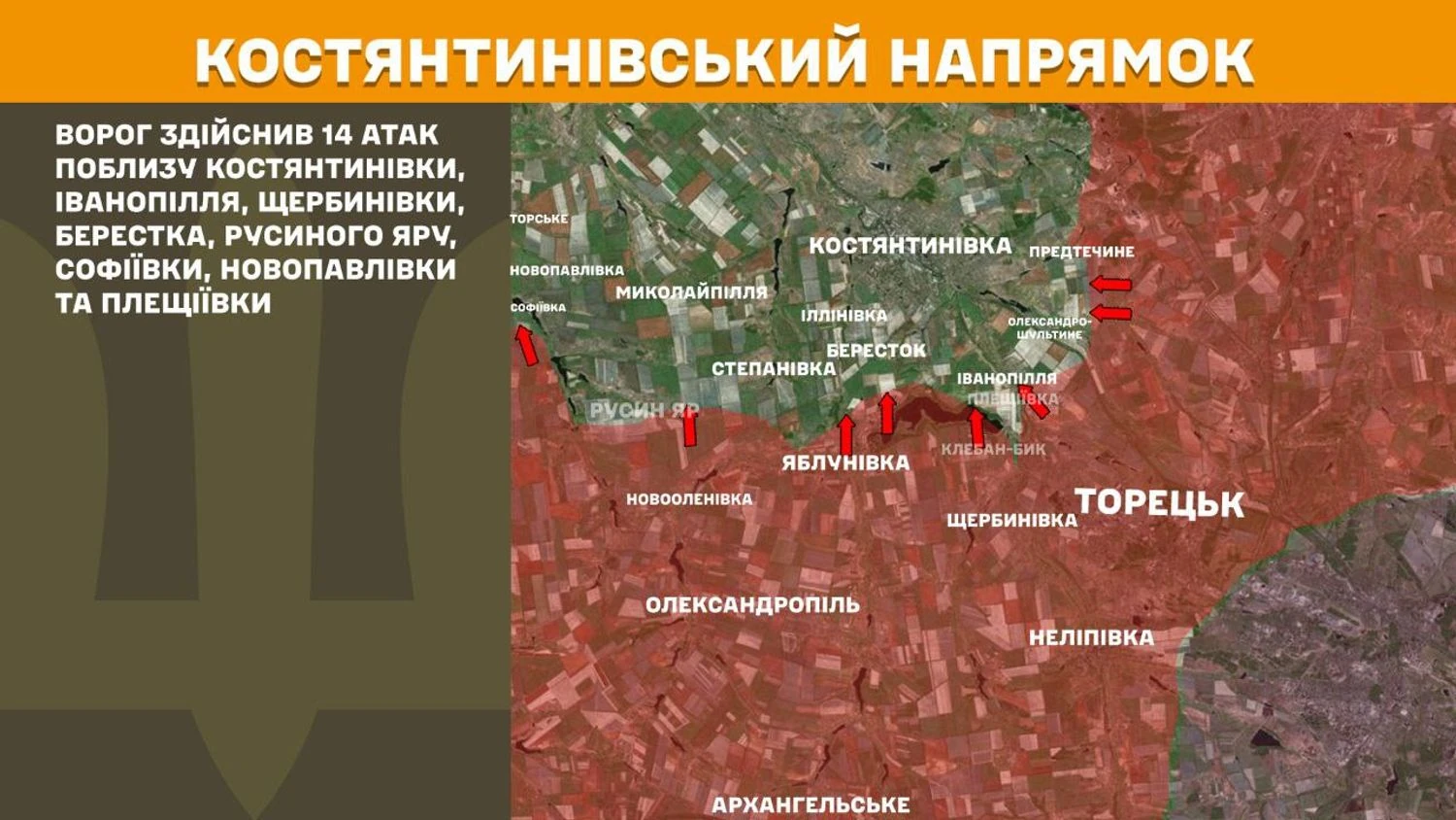 Також ворог виявляв активність на Костянтинівському напрямку, провівши 14 атак, та на Слов’янському, де було зупинено 9 спроб просування в бік Ямполя та Закітного.