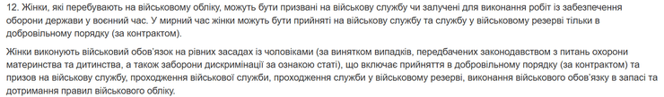 Усе залишається, як і було: жінка може мобілізуватися, але тільки за певних умов і тільки на добровільній основі.